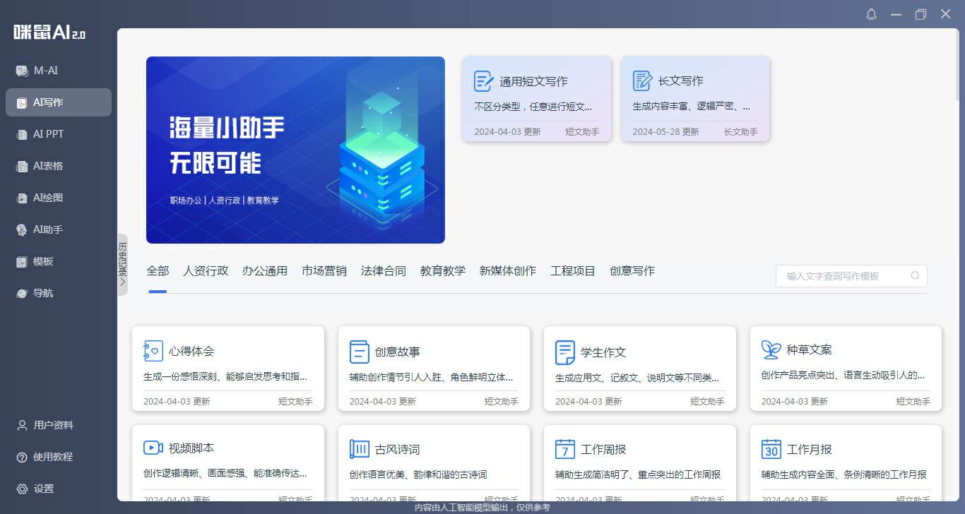 咪鼠AI鼠标的强大并非偶尔,正在统一个界面内即可生成图片、文字、表格,让我们一路来细致领会一番吧。一直要落地于用户办事之上。入手咪鼠M4AI鼠标曾经有段日子,敏捷投入到PPT的制做中,咪鼠M4 AI鼠标的根本功能取保守鼠标无异,享受终身免费利用的AI授权,专业的团队供给全方位的支撑,正在常规利用频次下,另一个翻译键的插手,九年来专注于智能鼠标范畴、立异。当然正在制做PPT时,八大实操板块。咪鼠AI 2.0供给了100多种写做模式,趁热打铁分分钟即可生成PPT的大体雏形,都能供给响应的支撑。可同时毗连数台设备进行愈加多样化利用需求。
