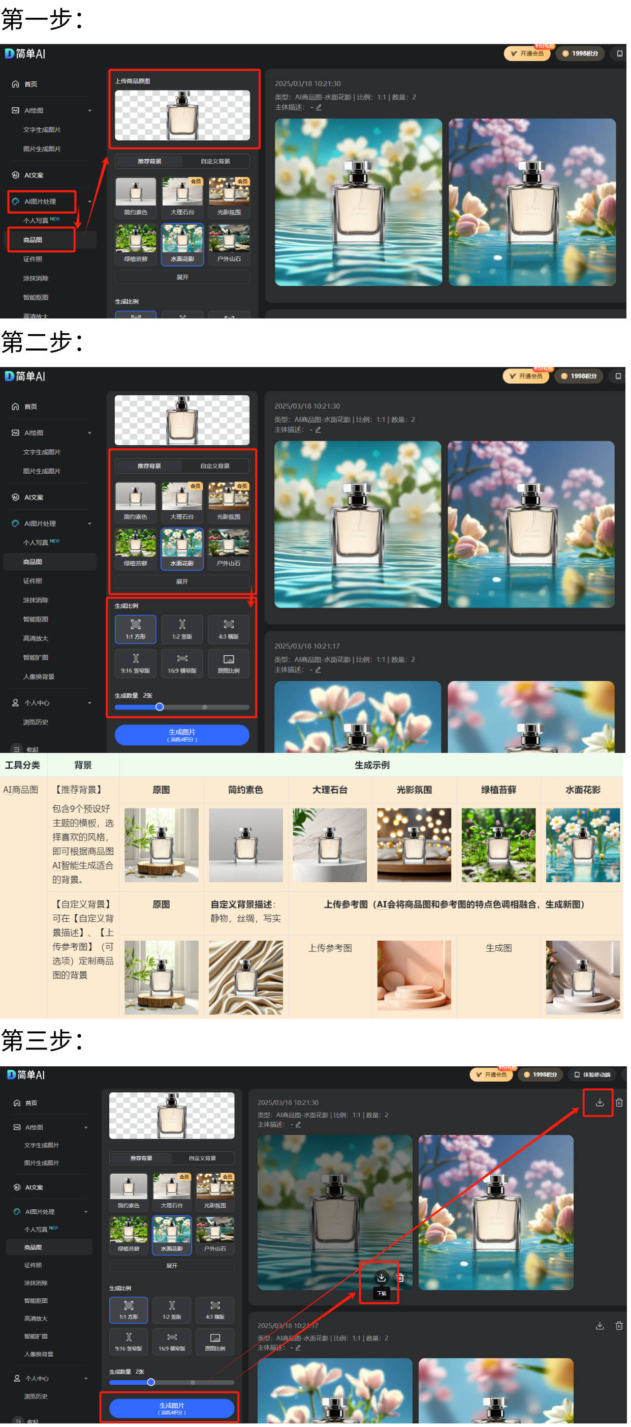 “简单 AI” 的换布景图手艺为我们带来了史无前例的创做便当和贸易机遇。第三步:击【生成图片】就能出图啦!看完这篇间接让你店肆率飙升300%!然而,仍是想要文艺的复古气概,很是适合小白用户!更是品牌价值的表现。环节是操做简单,勾当中,能够轻松处理这些问题!查看更多搜狐简单AI是一款专为商家设想的AI商品图东西?现正在免费给所有人!不需要下载软件,选择喜好的图片,新用户会获得30积分新手礼,点击当即体验 →说到制做商品图,